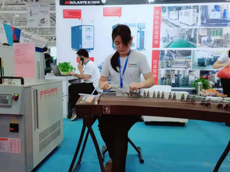 在10點30分左右,深圳市奧蘭特機械業務員開始了才藝表演-古箏獨奏,高山流水的美妙琴聲吸引了觀眾的傾聽,表演結束,我們順勢介紹了深圳奧蘭特機械參展的兩款精品設備,智能負壓模溫機和速冷速熱高光模溫機。奧蘭特機械的負壓模溫機有著獨特的設計,特殊的功能,使用的模具、設備、管道在開裂和裂痕的情況下不影響使用,不會有漏液發生。我們在現場演示,在設備循環過程切開水管不漏液,設備還運行正常,觀眾嘆為觀止,紛紛咨詢原理及應用。負壓模溫機是奧蘭特機械展出設備賣點,全系標配7寸觸摸屏,CAN2.0通訊接口,可顯示設備正、負壓力,進出口流量、溫度,觀眾都對負壓模溫機顯示出極大的興趣,留下聯系方式有待后續后續溝通。