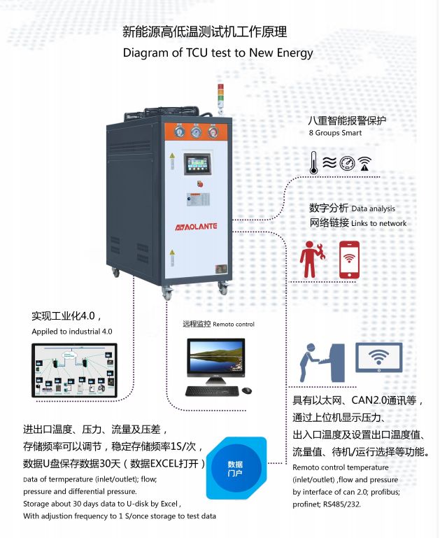 新能源汽車動力電池液冷測試系統(tǒng)功能描述: