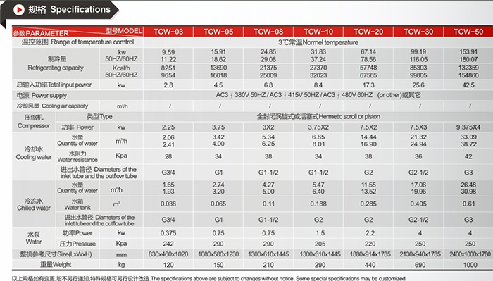 6.采用兩組壓縮機,可單獨使用或共同啟用(CW-10以上)